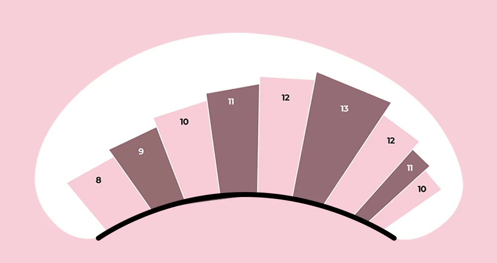 The longest eyelashes are in the outer corner, but we usually put a few lashes that are shorter in the last lash in the corner since they tend to be weaker.