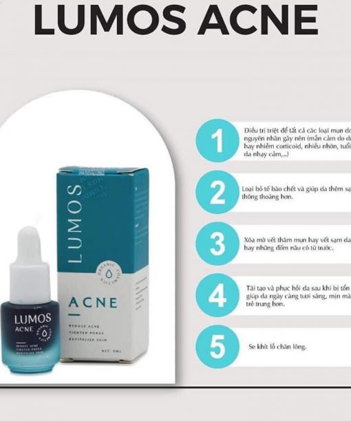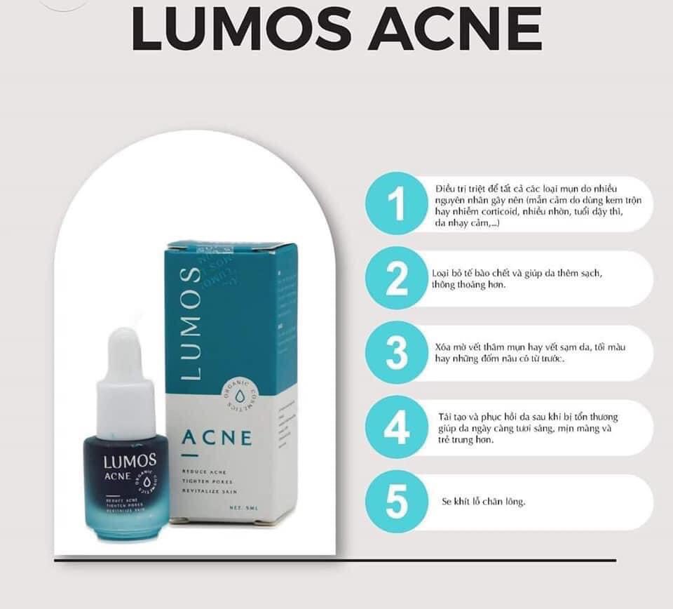 – In addition, lumos acne also helps to soften skin, tighten pores and even skin tone.